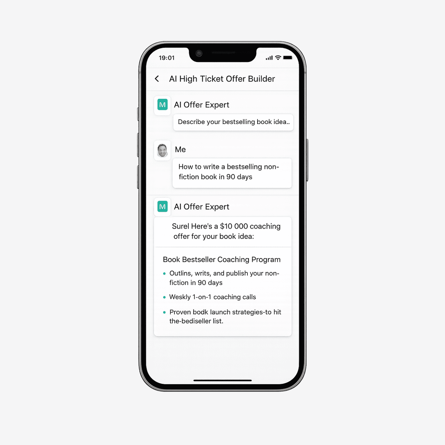 Turn any non-fiction book idea or concept into a $10,000 coaching offer in 30 mins or less with Bryan's custom AI tool.